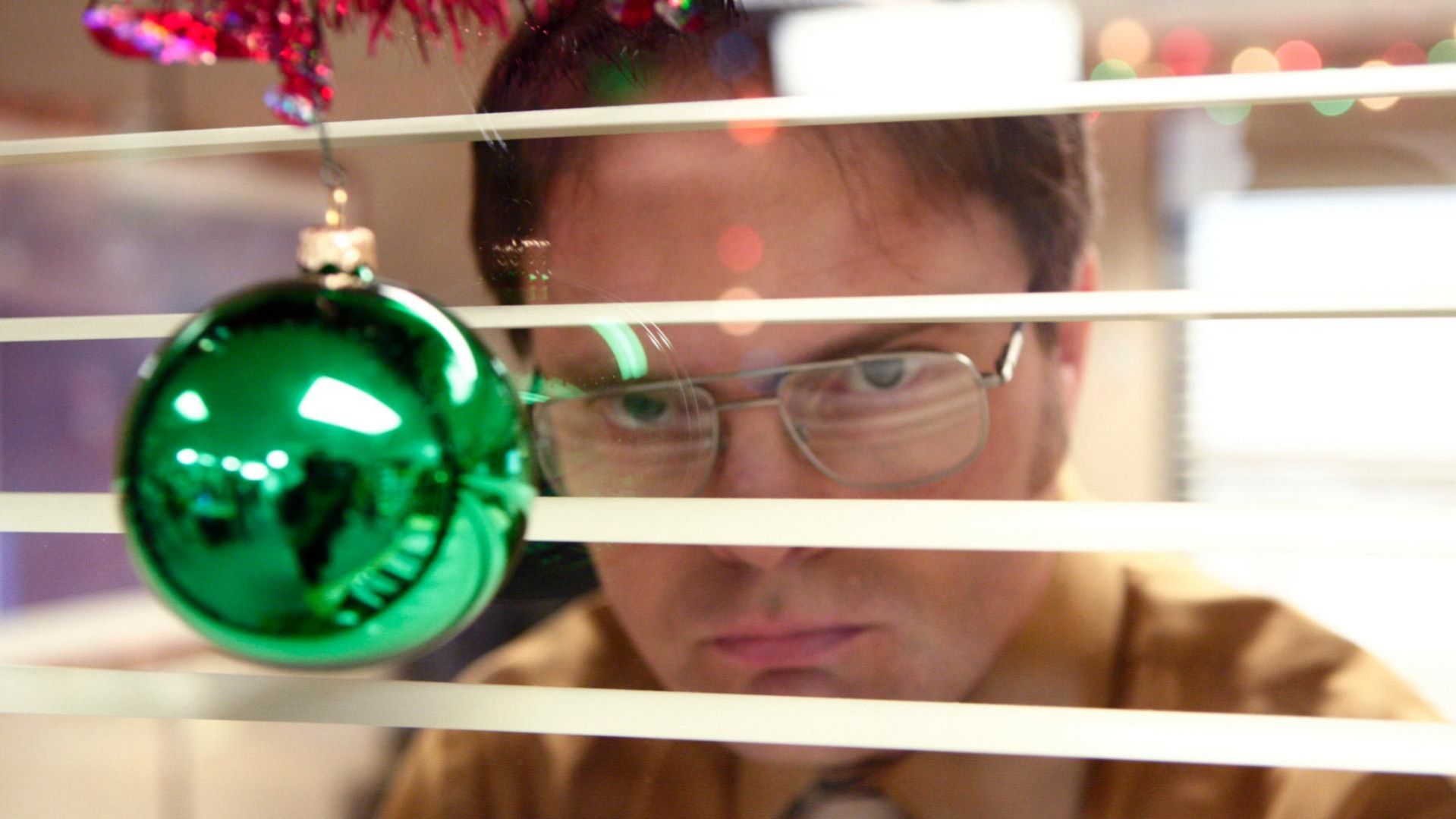 המשרד 5 - פרק 12 קרב הסיום - כולם הולכים על קליפות ביצים כי אנדי (אד הלמס) עוד לא יודע על הרומן של ארוסתו אנג'לה (אנג'לה קינסי) עם דווייט (ריין וילסון).