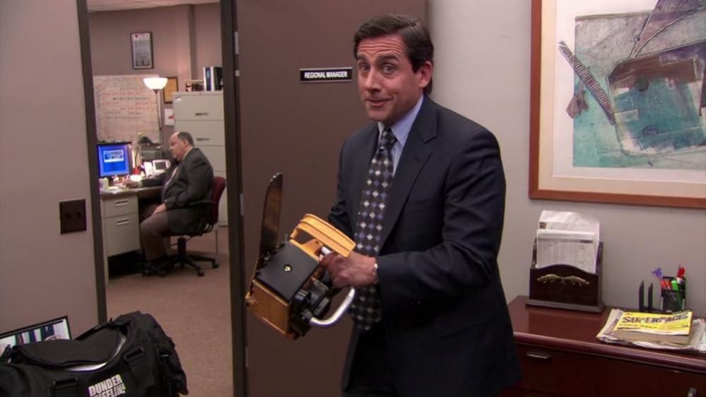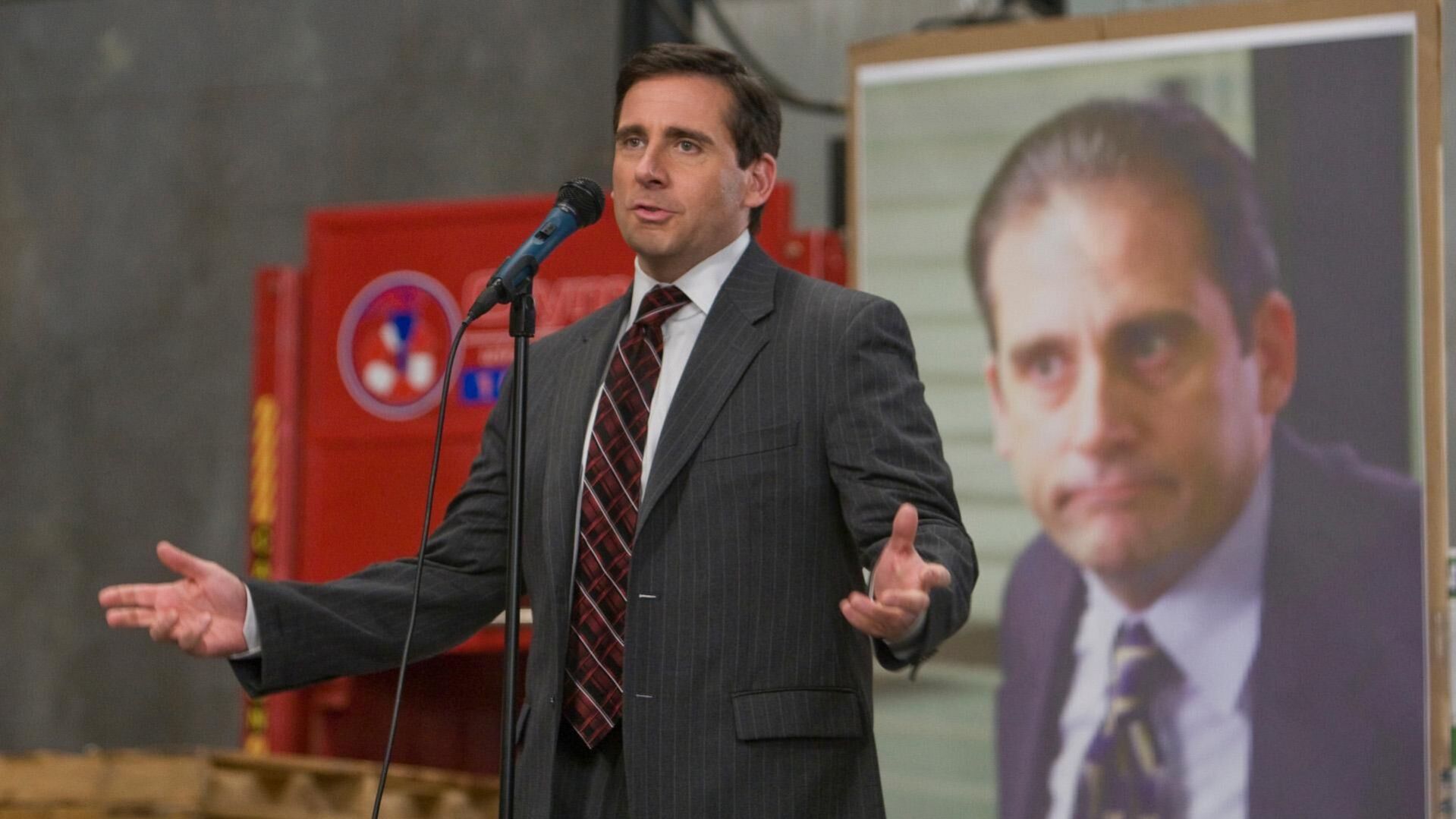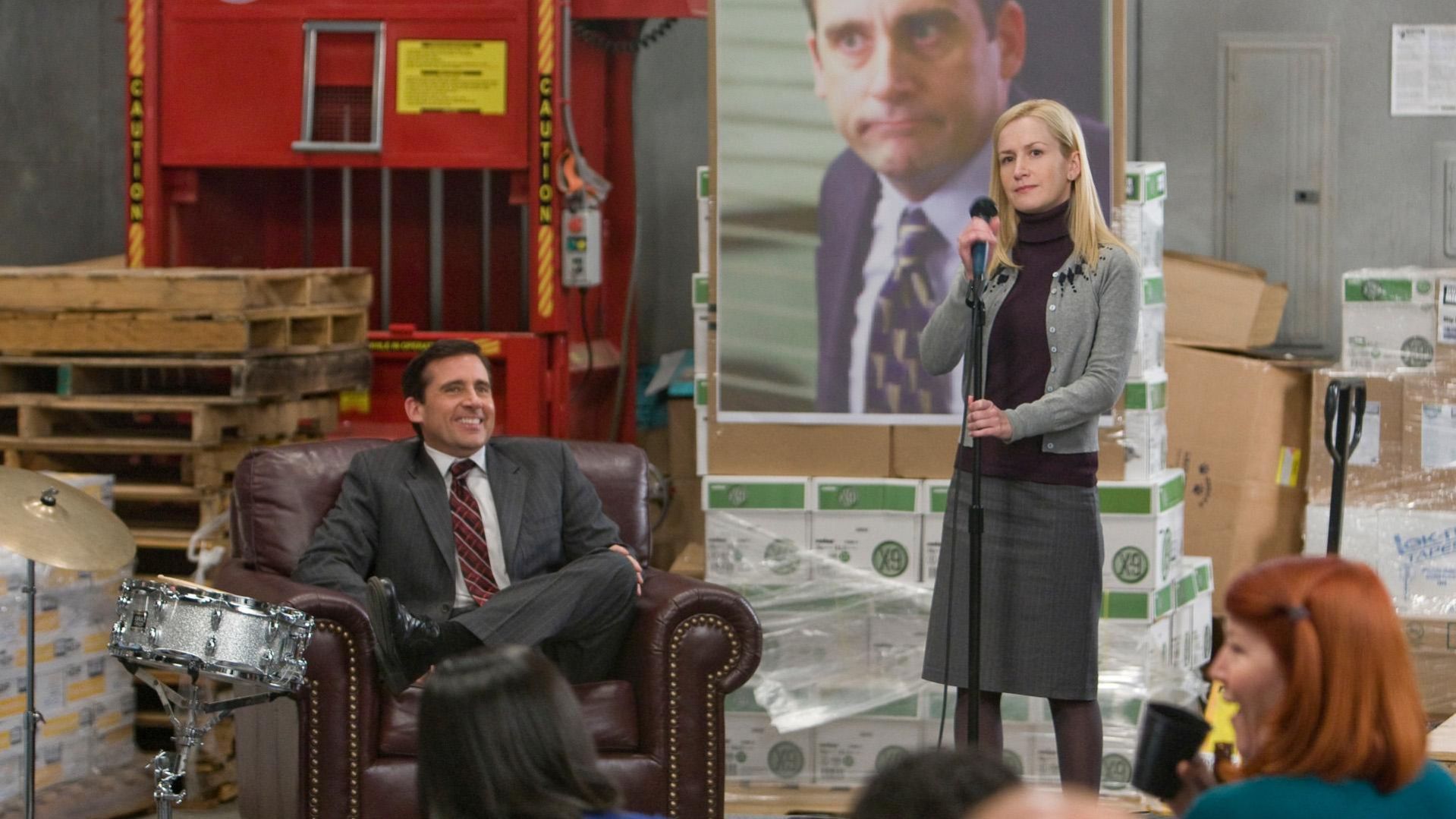 המשרד 5 - פרק 16 מייקל סקוט יוצא לסיבוב - מייקל (זוכה פרס גלובוס הזהב סטיב קארל) יוצא לסבב הרצאות בסניפי החברה כדי לספר על הצלחת הסניף שלו. הוא מלווה על ידי הנהגת שלו פאם (ג'נה פישר).