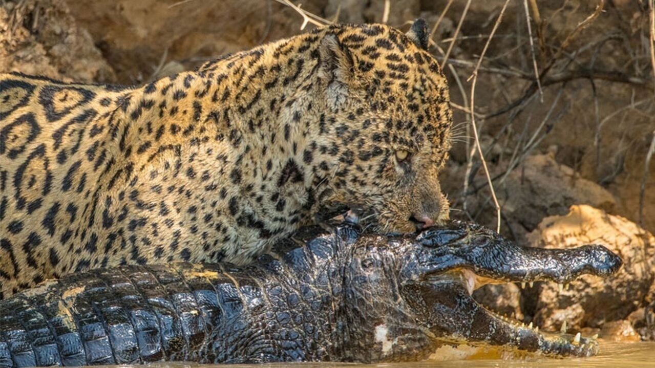 יגואר מול תנין בעלי חיים. צלם הטבע סטיב ווינטר והצלם ברטי גרגורי, מתעדים את חייהם יוצאי הדופן של היגוארים באזור הפנטנל בברזיל. זכר יגואר צולל אל הנהר ותוקף קיימן קטלני. ש.ח.